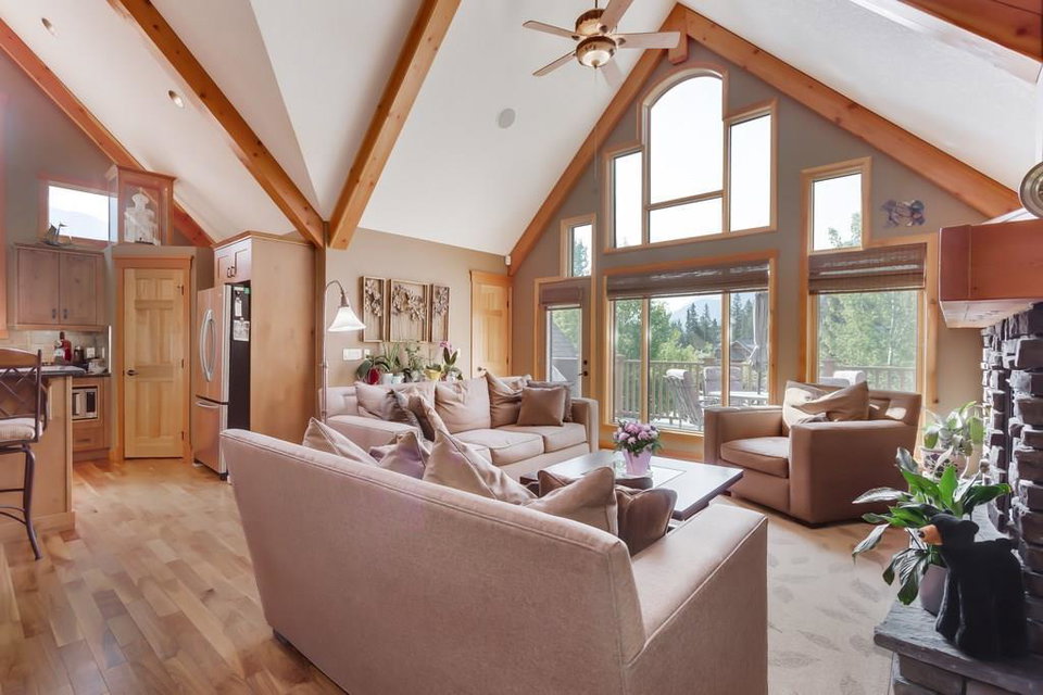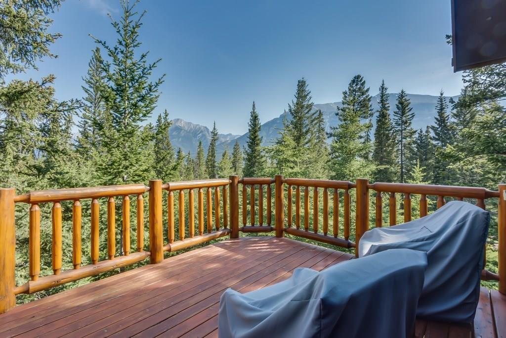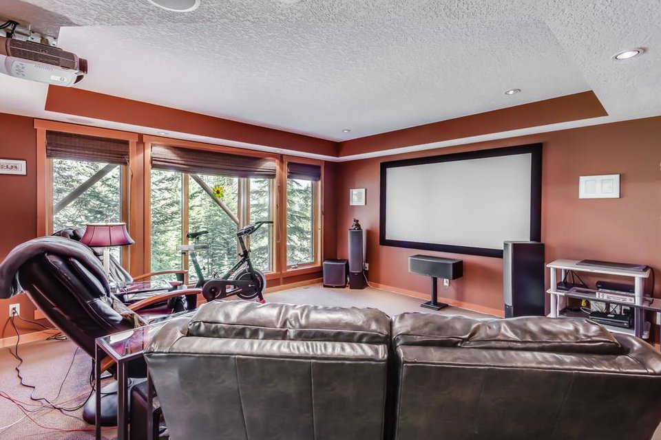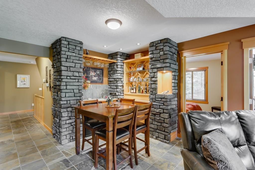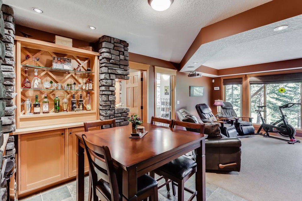 Beautifully crafted Canmore home boasting spectacular mountain views nestled in nature! Discover luxurious living throughout this 4 bedroom, 4 bathroom open concept home which features gorgeous wood work, walnut floors, vaulted ceilings with exposed post & beam accents, numerous, large windows that capture the mountain & treed views, wine room, wet bar & media room with audio visual equipment included, ample storage including a large pantry with additional cold room attached, superb outdoor spaces including 2 large decks, year round sunroom as well as a patio tucked in nature & triple car garage with workshop. This well maintained home is suite zoned & offers a legal basement suite with roughed in kitchen & separate entrance. Walk to the nearby bistro, recreation fields, playground, paths & trails in the beautiful Three Sisters neighbourhood!