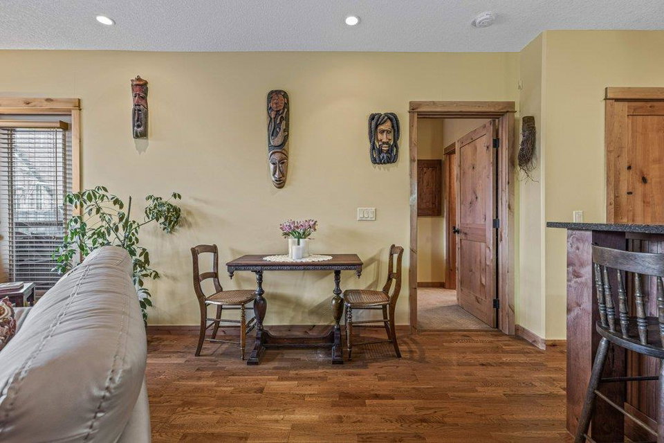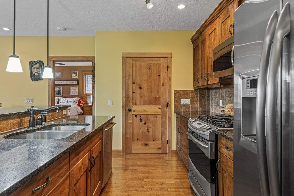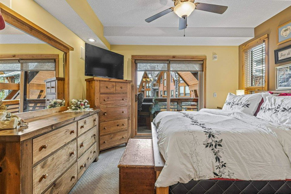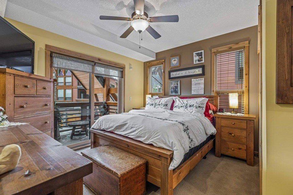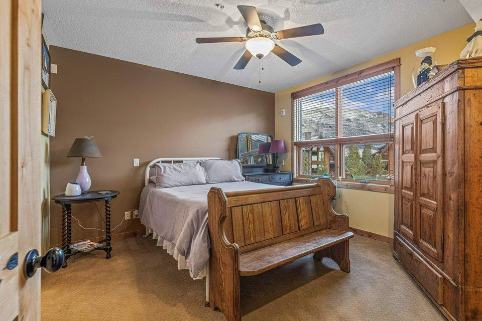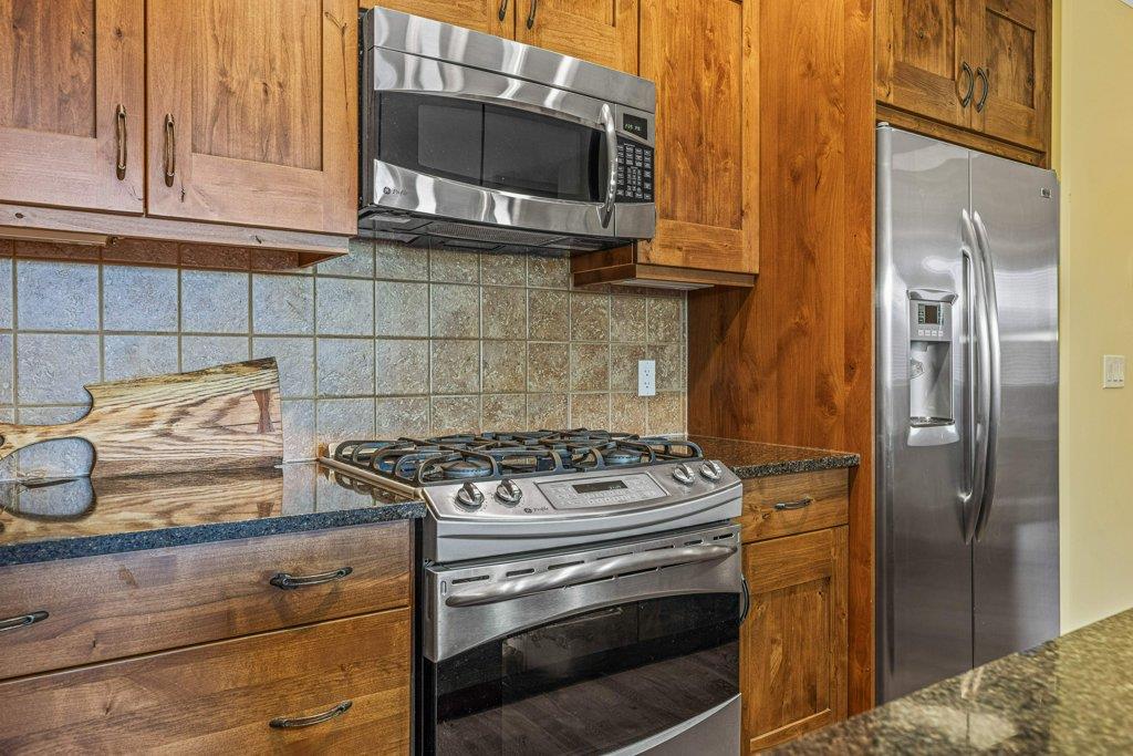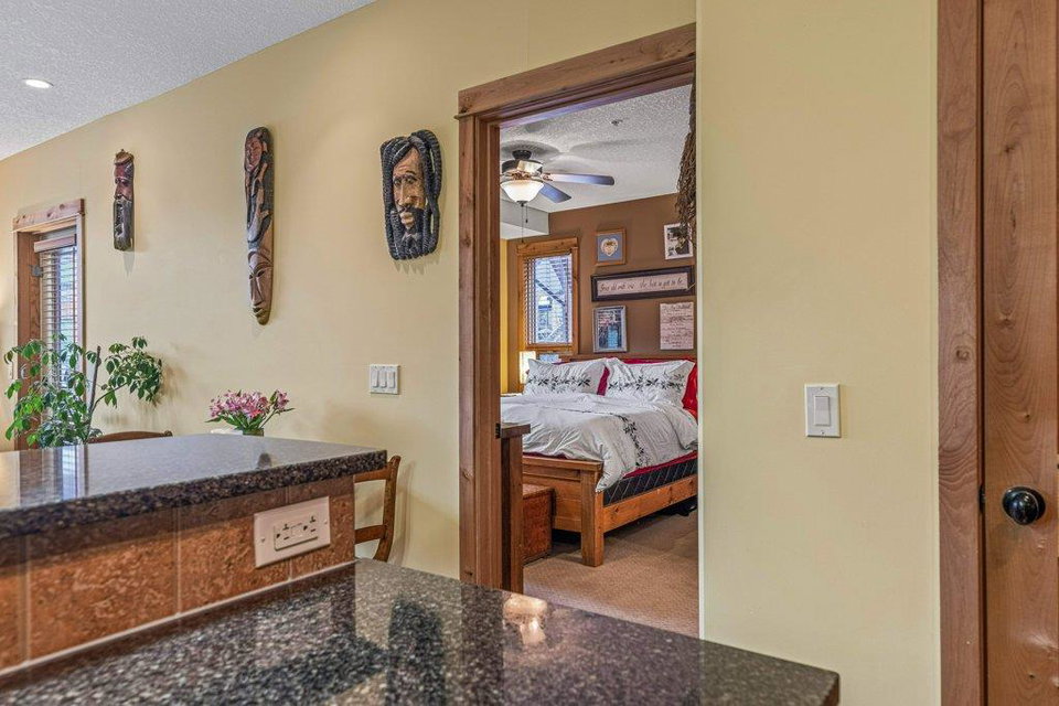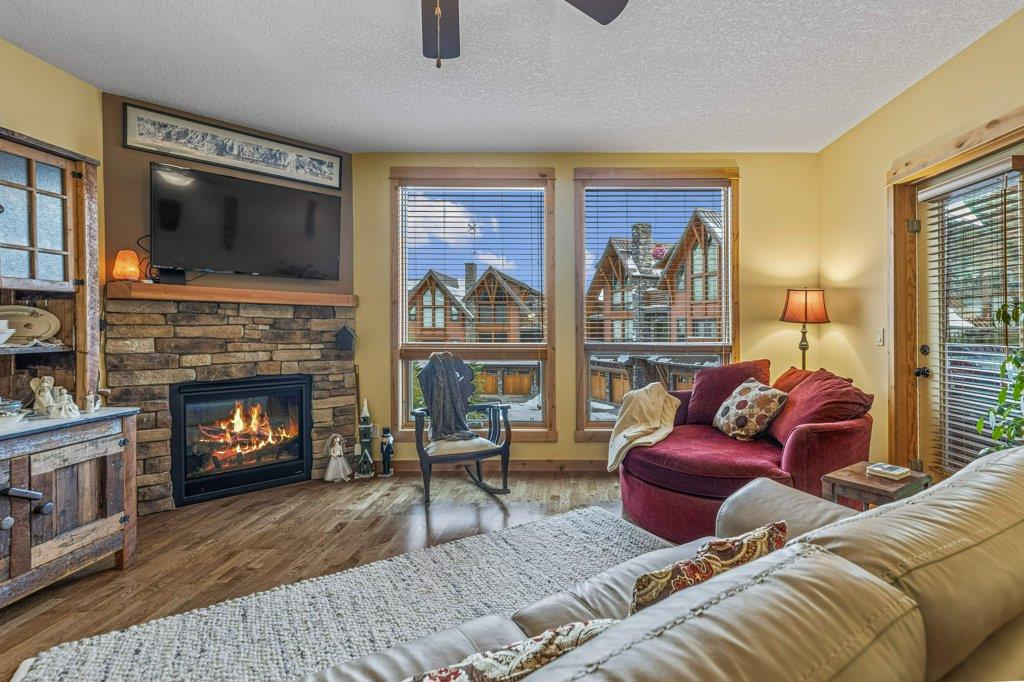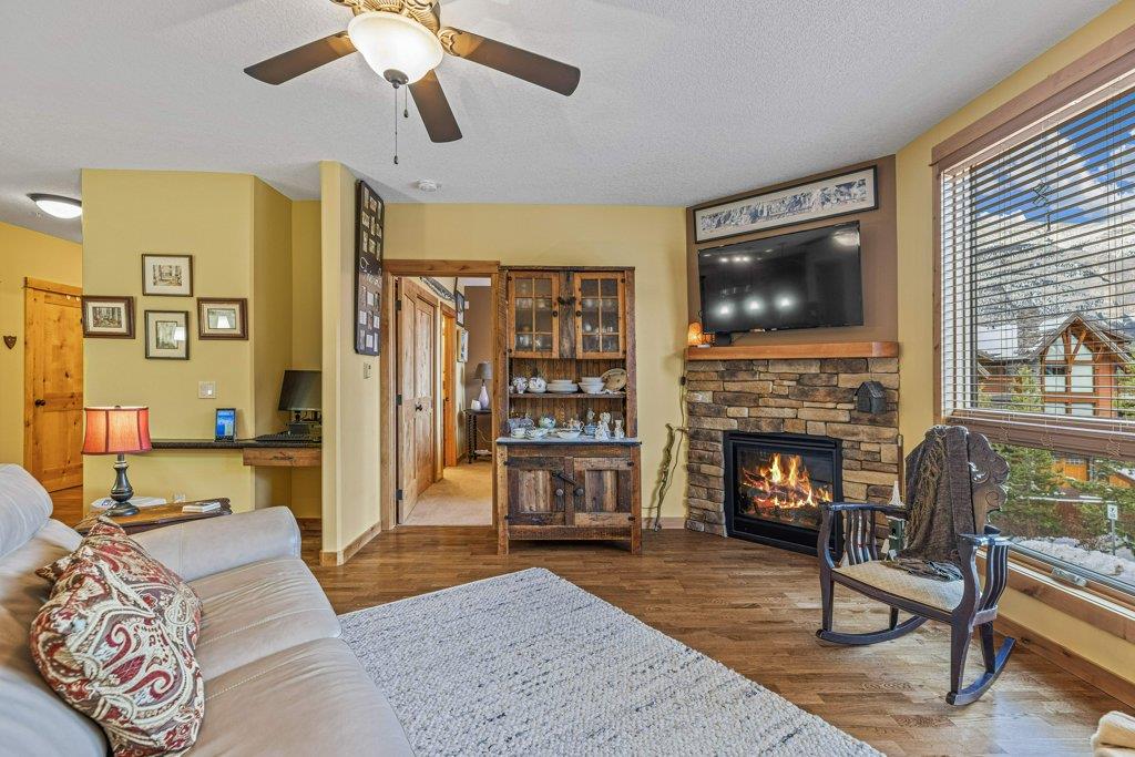 Mountain views & high quality craftsmanship reign throughout this beautiful Wilderness Ridge condominium! This luxurious 924 sq ft, 2 bedrooms, 2.5 bath condo features high end stainless steel appliances with a gas range, large kitchen island, large pantry, beautiful custom cabinetry, custom natural woodwork, granite countertops, and in floor heating throughout. A stone gas fireplace provides comfort & style to keep you toasty on those winter days. Two spacious bedrooms; both with ensuites; one with steam shower, one with soaker tub. A lovely covered deck offers a built in Napoleon gas BBQ with granite surround and a fantastic lounging area to enjoy the mountain vistas. Heated underground parking stall & storage unit included and bike storage available. Built Green Gold specifications.