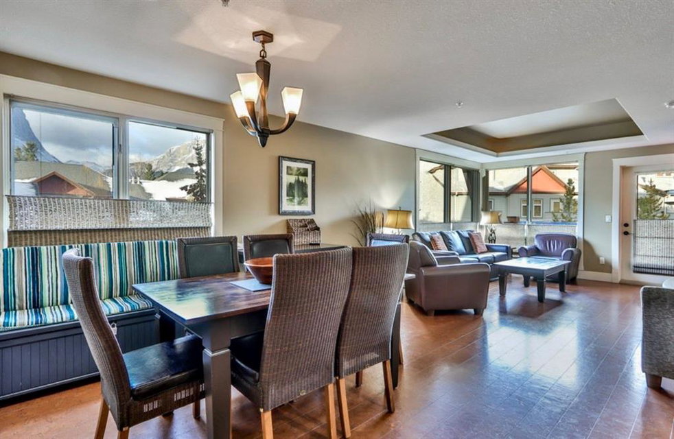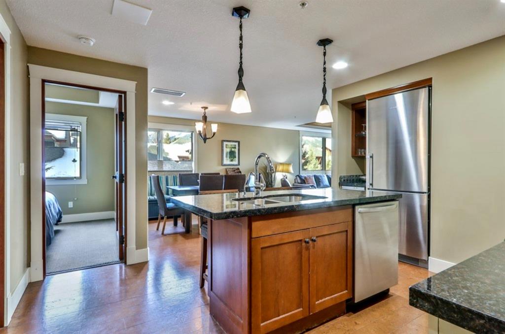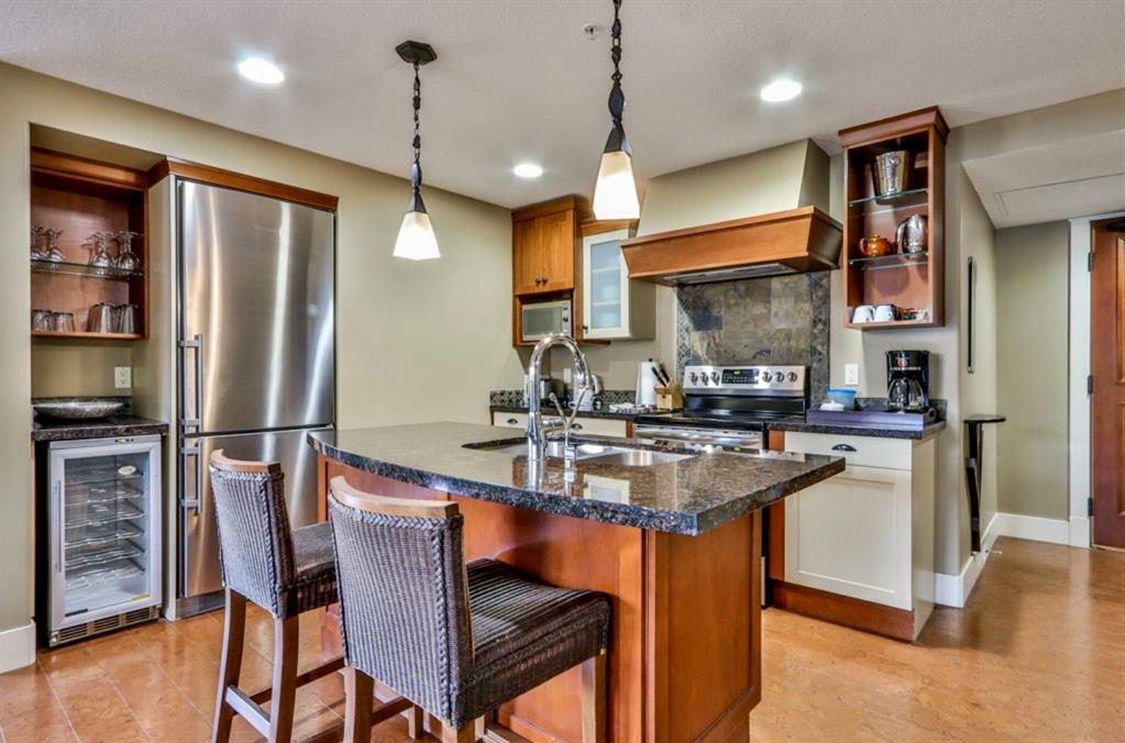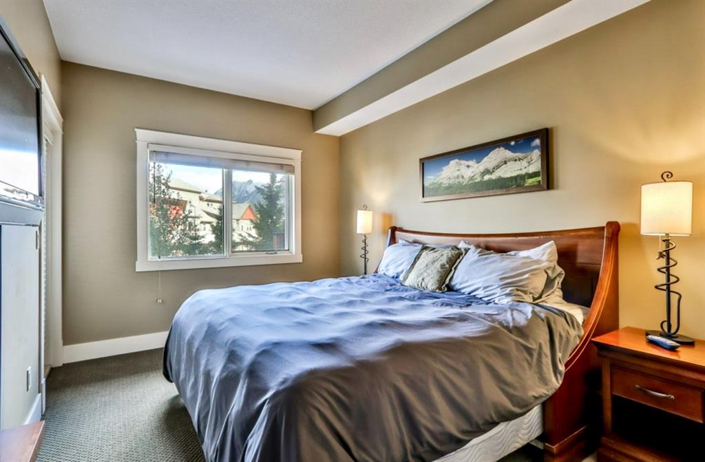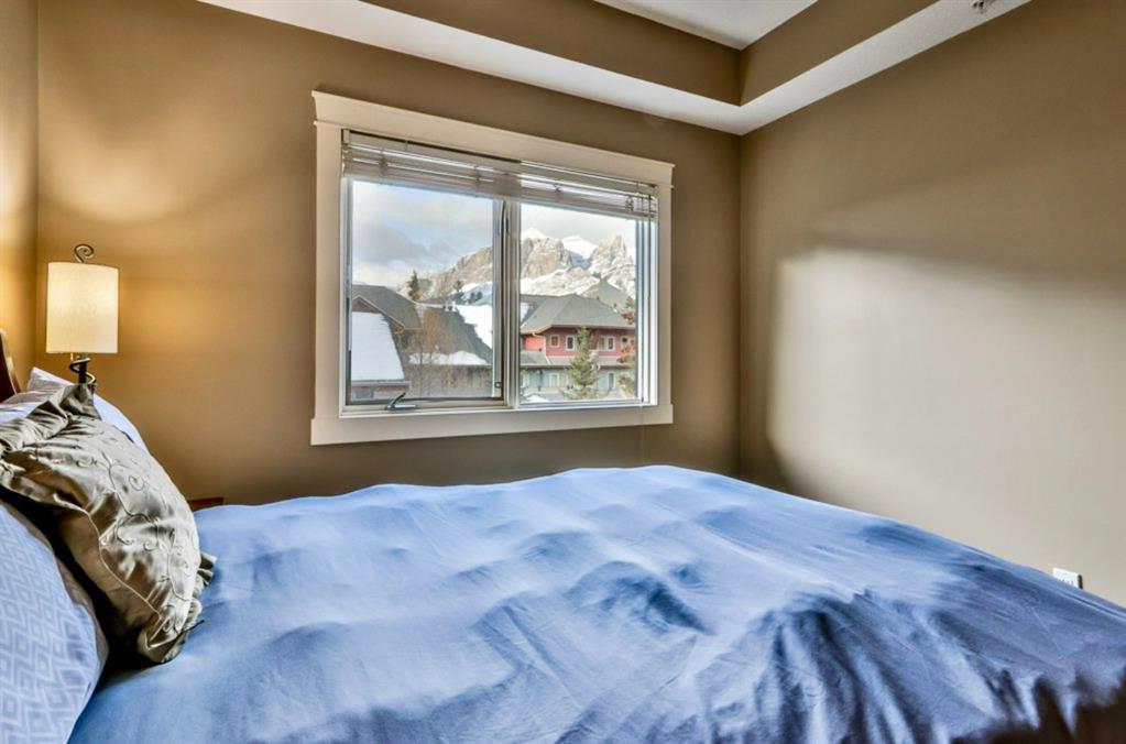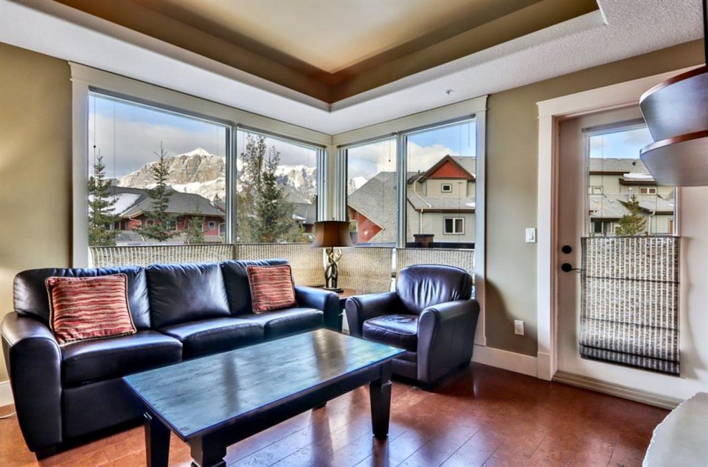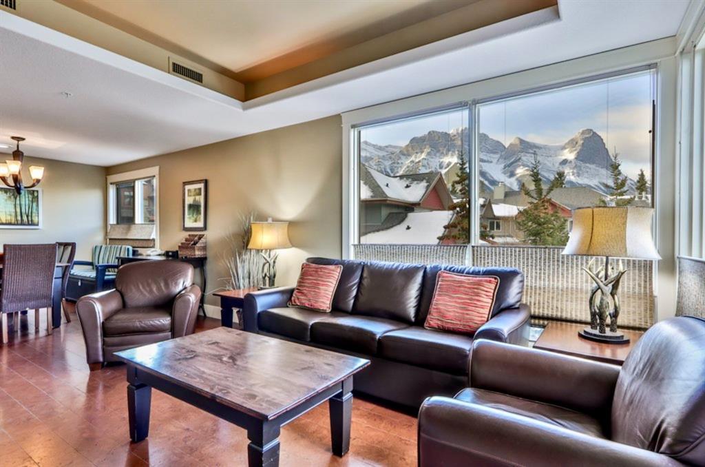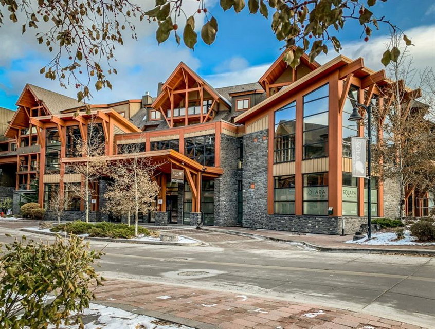 Stunning, turnkey, corner unit at Solara Resort & Spa boasting spectacular mountain views from every window & quality finishings with access to outstanding amenities! This spacious, fully furnished, two bedroom, two bathroom mountain retreat offers an open plan that includes a beautiful kitchen with granite island & countertops as well as stainless steel appliances with an adjoining, sizeable dining area offering grand views. Nestle up to the fireplace in the generous yet intimate living area that features ample windows to savour the superb mountain views or relax on the large balcony that showcases the Grassi & Rundle mountain ranges. Retreat to the impressive master bedroom to unwind by a second fireplace or soak in the spa tub & rain shower in the master ensuite which also boasts a vessel sink & polished concrete countertop. A second bedroom, bathroom & in suite laundry complete this exquisite retreat. Enjoy the numerous resort amenities including an extensive fitness centre & full service spa, indoor plunge pool & hot tub, theatre, children’s activity & games room & much more!