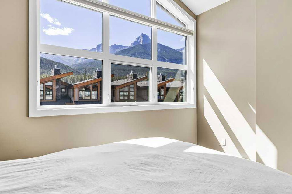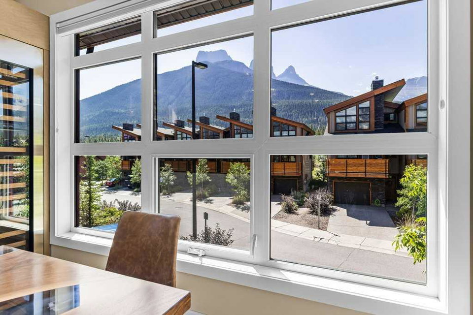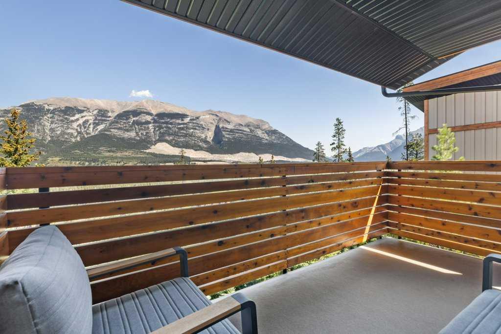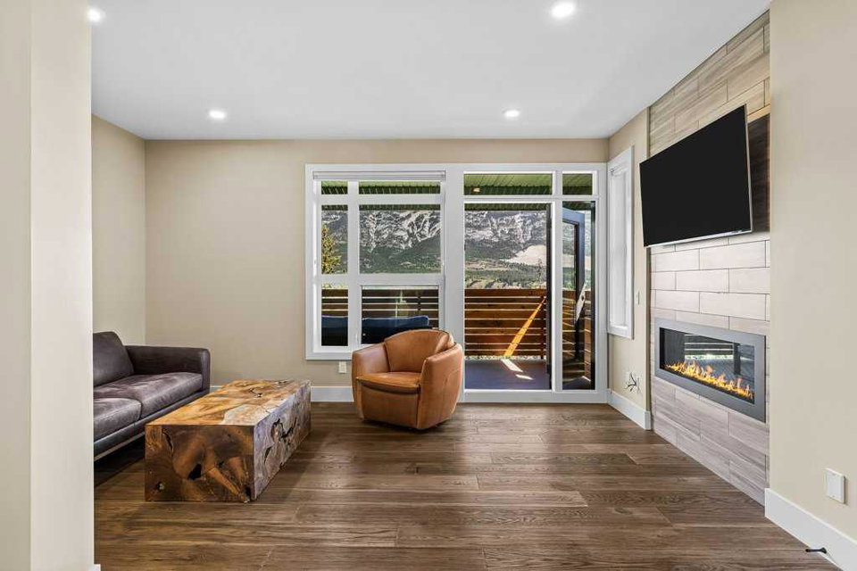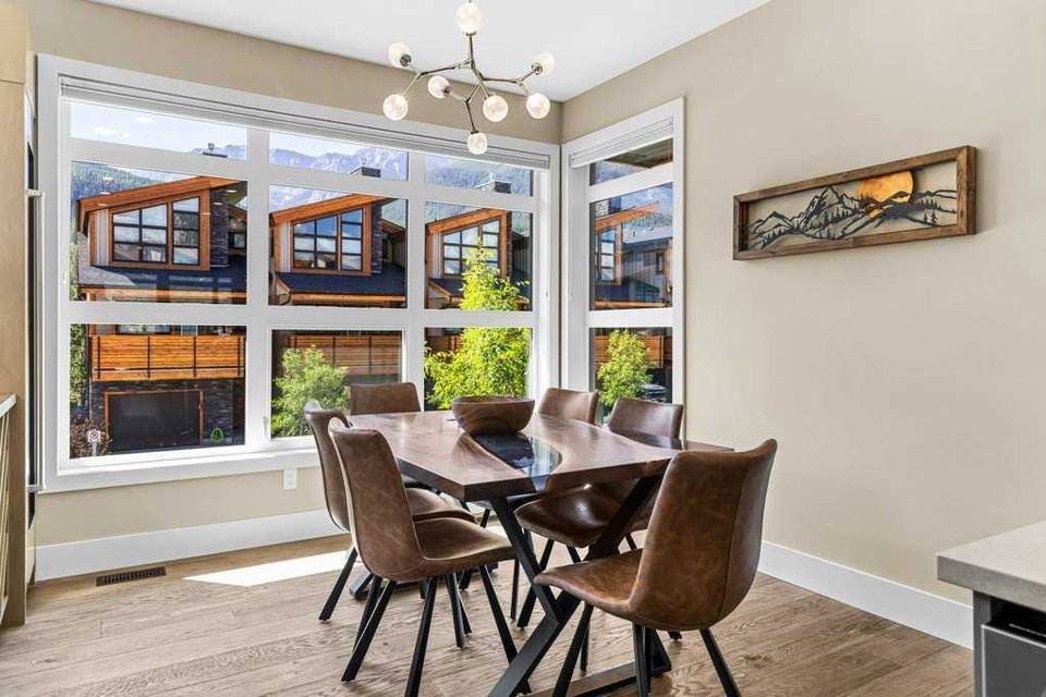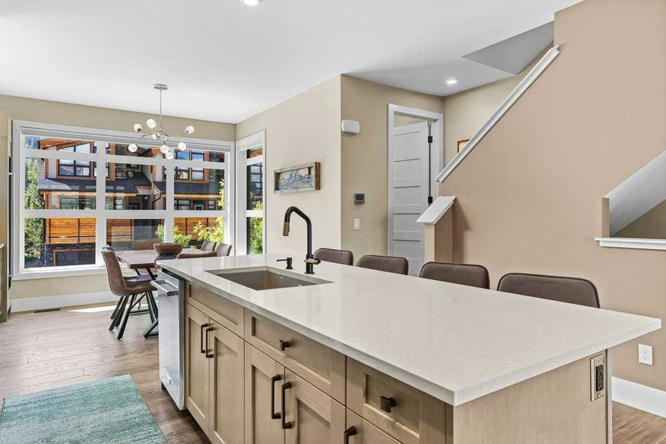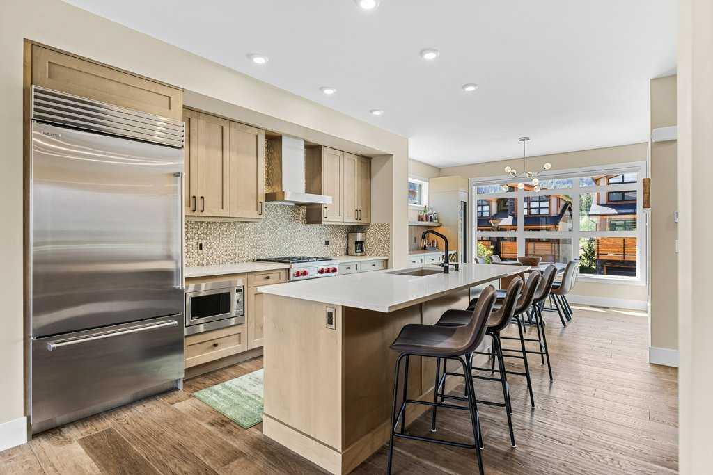 A meticulously designed end-unit townhouse in the heart of Canmore’s sought-after Three Sisters community. Step into the renovated kitchen, where quartz countertops, upgraded appliances to Wolf and SubZero, a spacious seating area, and a built-in full height SubZero wine fridge set the stage for both everyday living and elegant entertaining. The open-concept layout flows seamlessly into the living and dining areas, anchored by a warm gas fireplace and bathed in natural light from expansive windows. From here, step out onto your private deck to soak in the peaceful mountain air and views. Upstairs, you’ll find two spacious bedrooms, including a luxurious primary suite with ensuite bath, as well as a second full bathroom. This 2-bedroom, 3-bathroom mountain retreat offers approx 1500sqft of refined living space with unobstructed views of the three sisters, including a cozy office den perfect for working from home and a large separate gear room separated from an oversized single car garage plus extra driveway parking. The recently added air conditioning ensures year-round comfort.