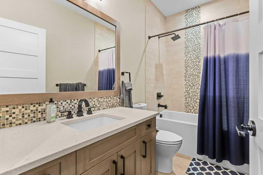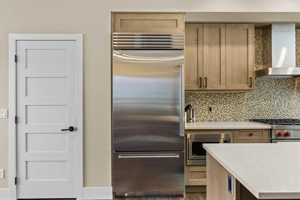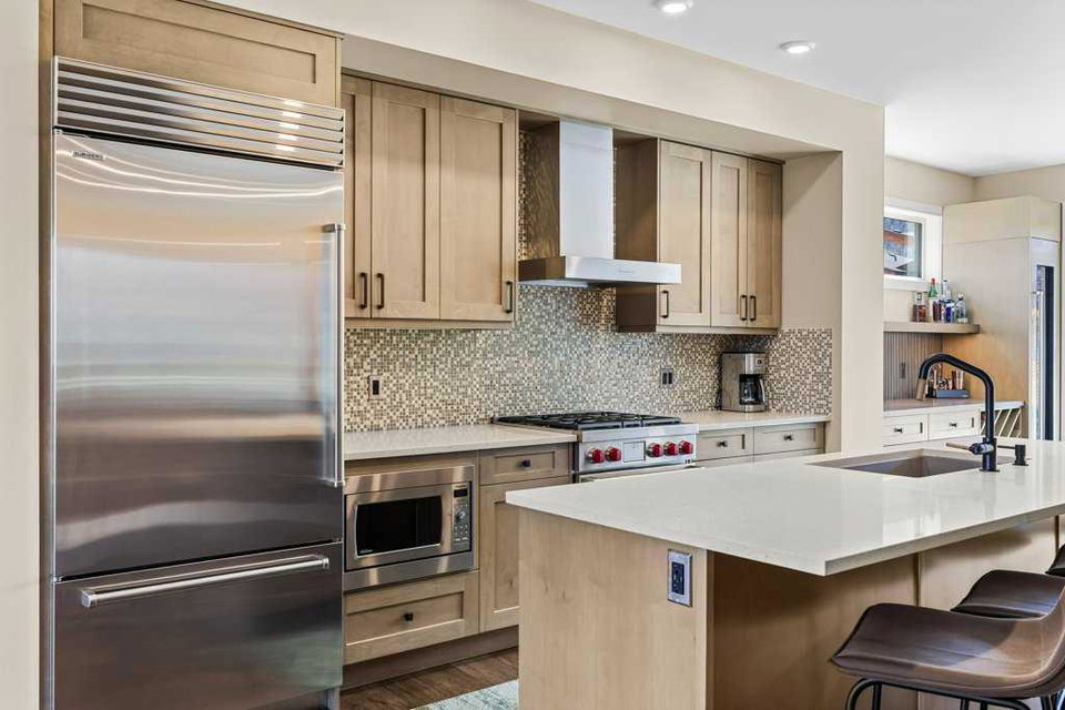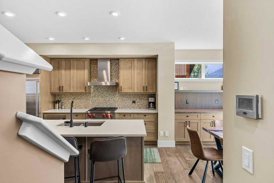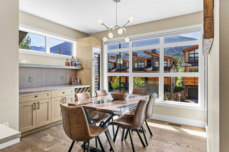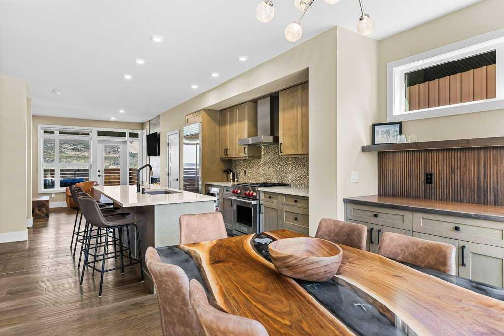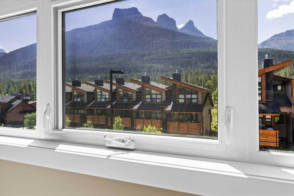 A meticulously designed end-unit townhouse in the heart of Canmore’s sought-after Three Sisters community. Step into the renovated kitchen, where quartz countertops, upgraded appliances to Wolf and SubZero, a spacious seating area, and a built-in full height SubZero wine fridge set the stage for both everyday living and elegant entertaining. The open-concept layout flows seamlessly into the living and dining areas, anchored by a warm gas fireplace and bathed in natural light from expansive windows. From here, step out onto your private deck to soak in the peaceful mountain air and views. Upstairs, you’ll find two spacious bedrooms, including a luxurious primary suite with ensuite bath, as well as a second full bathroom. This 2-bedroom, 3-bathroom mountain retreat offers approx 1500sqft of refined living space with unobstructed views of the three sisters, including a cozy office den perfect for working from home and a large separate gear room separated from an oversized single car garage plus extra driveway parking. The recently added air conditioning ensures year-round comfort.
