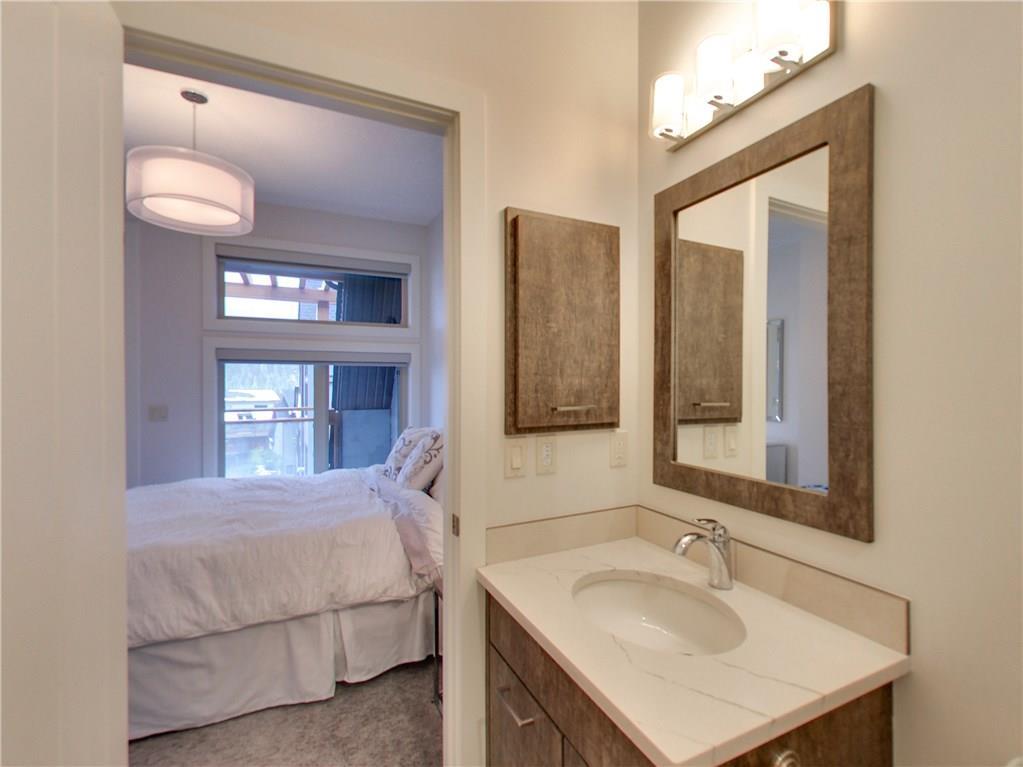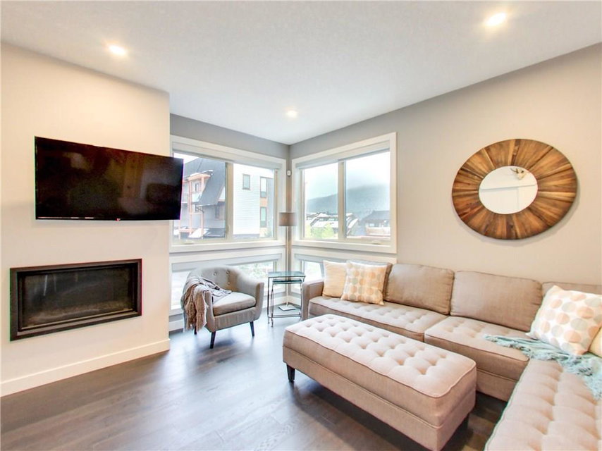 Beautiful, nearly new, mountain modern townhome boasting spectacular views in The Ledges. This gorgeous corner unit offers large windows that capture the views, quartz countertops, stunning cabinetry & engineered hardwood floors, gas fireplace, two master bedrooms each with an ensuite & walk in closet, massive balcony to enjoy sunny,mountain views, single detached garage & more. Steps to trails, near Stewart Creek Golf Course & recreation fields with a bistro & other amenities within the neighbourhood.