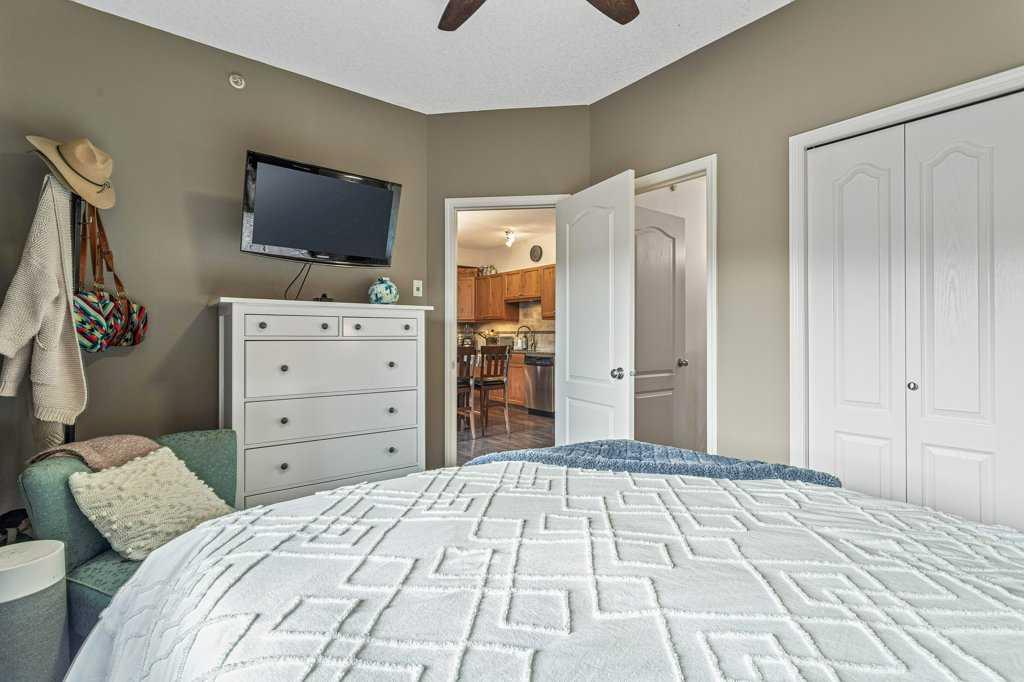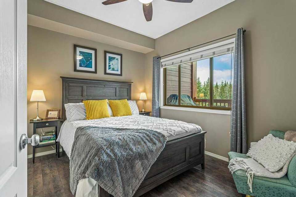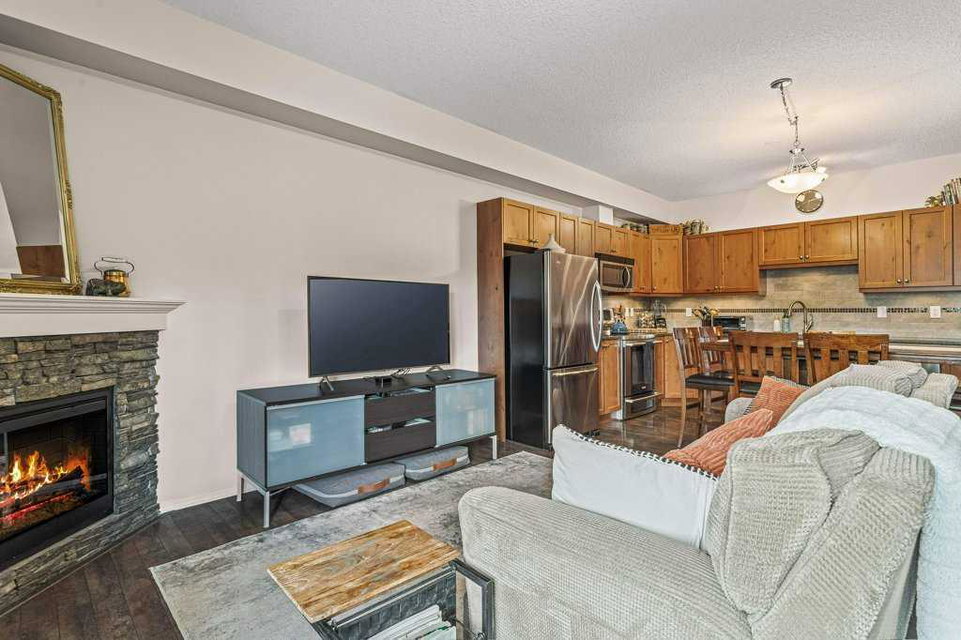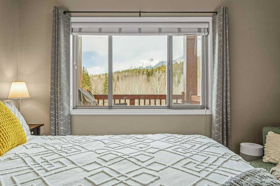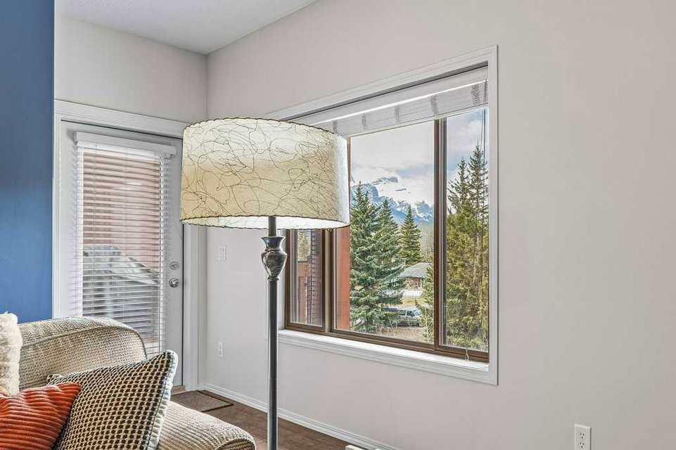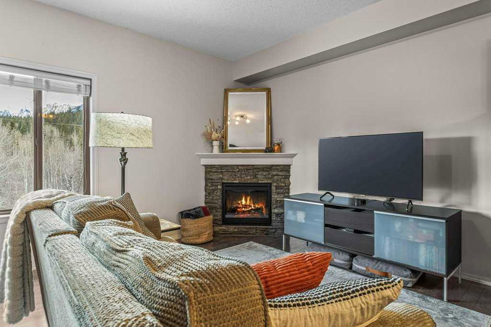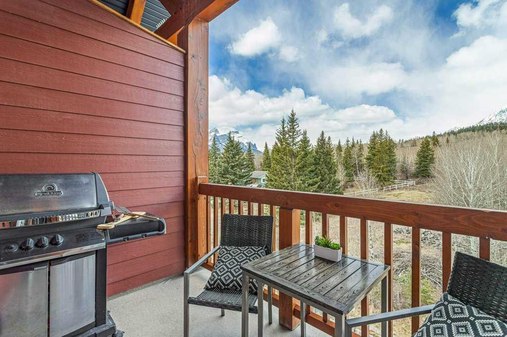Introducing a luxurious top-floor unit at 300 Palliser Lane, offering an unparalleled blend of comfort and convenience. This meticulously maintained condominium boasts unobstructed mountain views and is situated at the backside of the building, ensuring tranquility and privacy. Featuring 2 bedrooms and 2 bathrooms, including an ensuite in the primary bedroom, this modern residence also includes stainless steel appliances, large in-unit laundry facilities with a newer washer/dryer and extra storage, under-counter kitchen lighting, and a built-in water purification system. Adding to its allure, the property comes with the rare advantage of two parking stalls and a large custom storage unit complete with built-in bike racks and shelving, catering to your storage needs with style and functionality. Experience the epitome of modern living in this well-kept and stylish condo building, where every detail is designed to elevate your lifestyle.