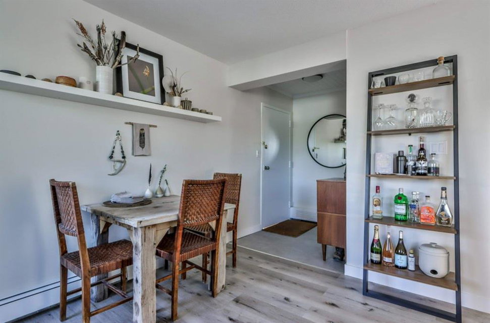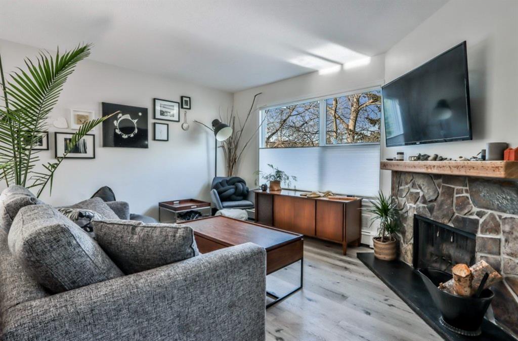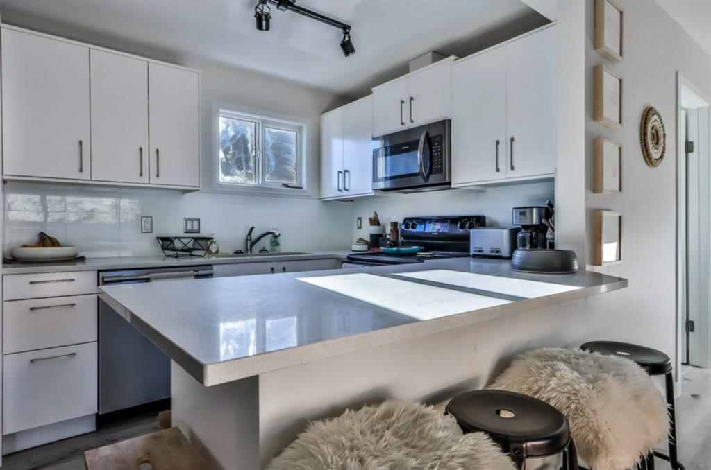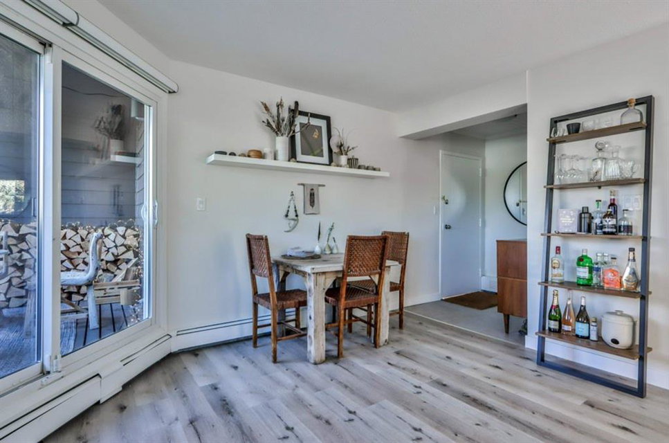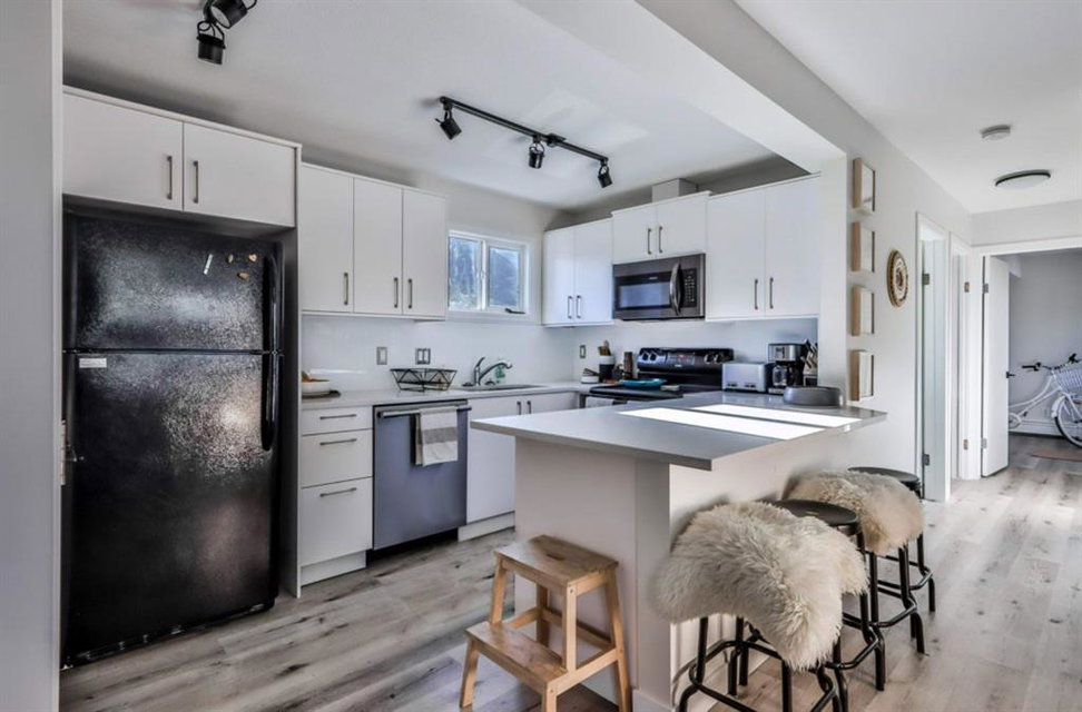Beautiful, professionally renovated, top floor condominium steps from downtown & numerous amenities boasting views & one level living! Upon entering this stunning abode, discover an open & spacious living area featuring large windows that showcase the mountain & treed views with a wood-burning fireplace that adds a rustic & inviting element to the space. Find a dining area, kitchen featuring quartz countertops, island eating bar & bright window above the sink to enjoy the sunny, scenic views, in suite laundry, as well as sliding door access to a private, covered balcony also offering mountain views. Two bedrooms, den, & bathroom are tucked down the hall, each with mountain views, including a generous yet intimate master suite providing corner window views. Call this gorgeous, walkable, south Canmore home yours today!